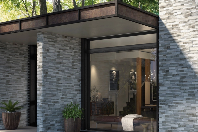 Les fans de pierre traditionnelle pourront choisir le parement en pierre naturelle ou reconstituée, et ceux qui préfèrent les designs plus contemporains préféreront les parements en grès cérame. Le tout à poser aussi facilement qu’un carrelage classique !