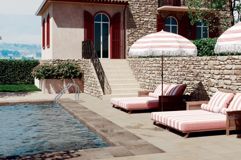 Pour jouir pleinement de sa piscine et de toutes les activités dont on ne se lasse pas autour — bronzer, jouer, lire, dormir, ne rien faire…— il convient non seulement de choisir le revêtement intérieur du bassin — mosaïques en pâte de verre, carrelage de piscine, pierre naturelle…— mais également celui qui ornera les abords : plages, margelles, mais aussi terrasses.