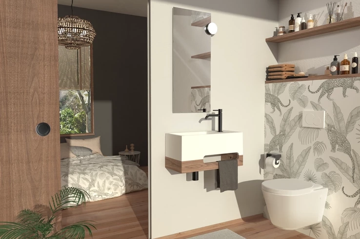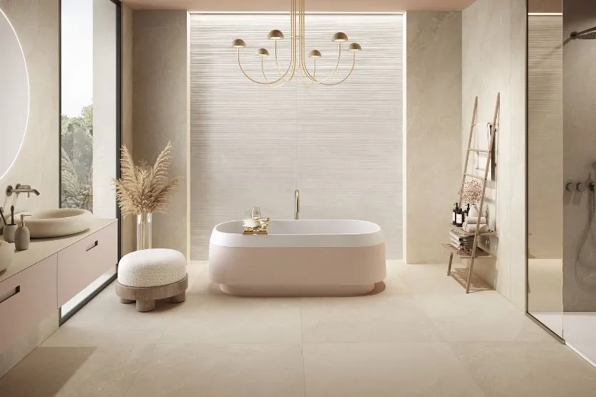 Comment faire ? Rien de plus simple... Pour votre carrelage, privilégiez des teintes neutres et délicates comme le beige, le crème, le gris clair, le rose pâle...Côté aspect, optez pour le grès cérame effet pierre naturelle ou bois, pour une ambiance zen et apaisante. Pour un rendu authentique, choisissez des finitions mates et des textures délicates. Dans la salle de bain, préférez des sanitaires aux lignes minimalistes, des baignoires îlot aux courbes harmonieuses et des meubles aux lignes simples et légères.