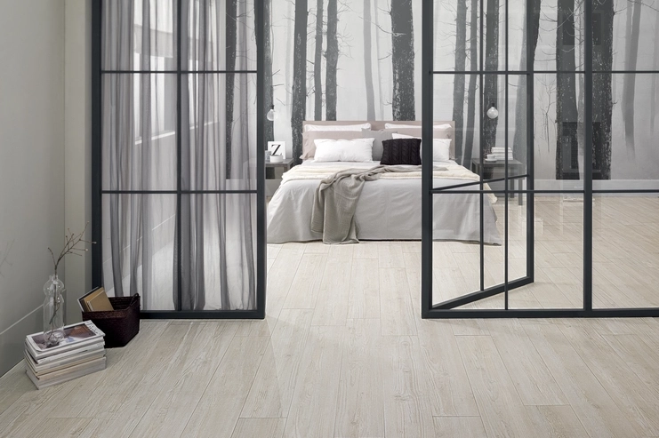 • Le carrelage aspect bois : Pour retrouver toute la chaleur du parquet sans les contraintes d'entretien. Idéal pour une chambre parentale cosy.