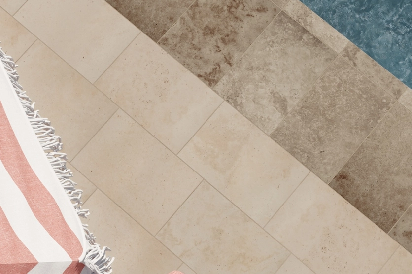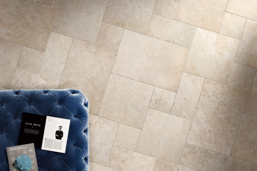 Vous en connaissez aussi la fragilité… mais aujourd’hui, le grès cérame aspect travertin, bien plus solide, reproduit à la perfection le travertin antique.