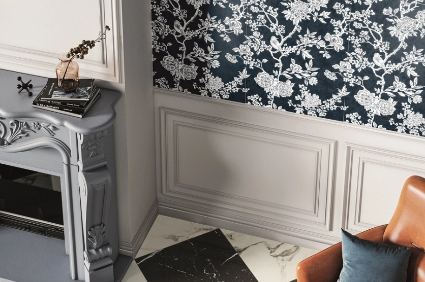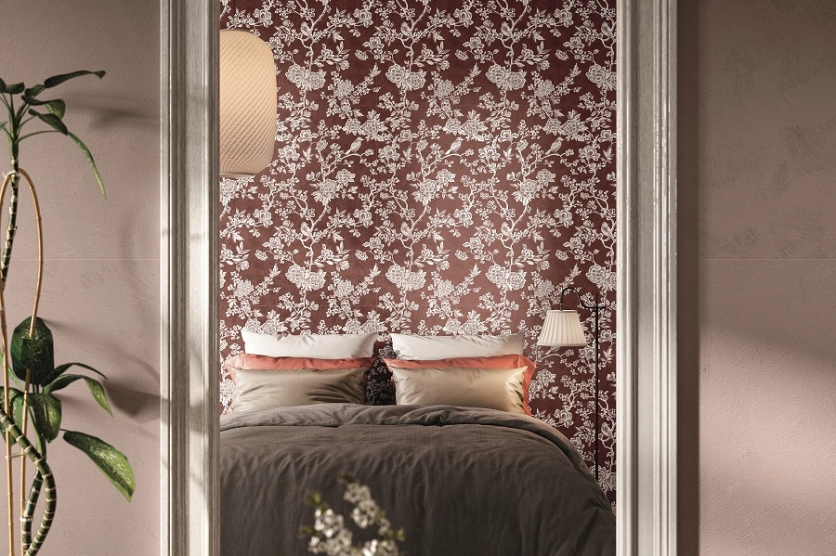 Avec ses décors effet papier peint, cette nouvelle gamme de carrelage pour les murs et le sol nous transporte immédiatement dans un univers magique, où fleurs, branches d’herbe, toile de Jouy, damassé, ton sur ton se coordonnent avec une palette d’unis intenses prenant l’aspect d’un ciment taloché à la main. Les frises et autres panneaux décoratifs viennent parfaire une impression de majesté.