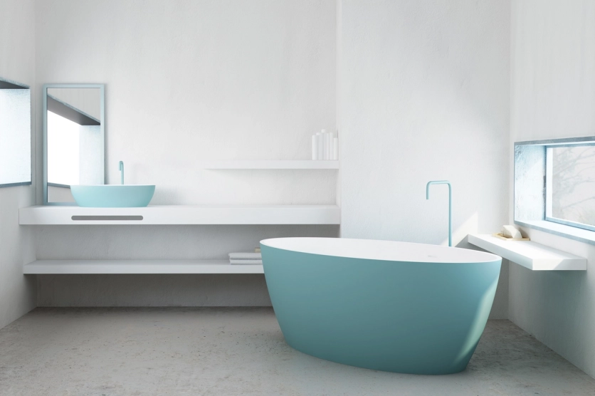 Revêtus de teintes originale et de nuances de couleurs inattendues, les sanitaires se transforment en objets décoratifs centraux, et apportent à cette pièce, synonyme de détente et de soin de soi, une ambiance égayée, entre style et bien-être.
