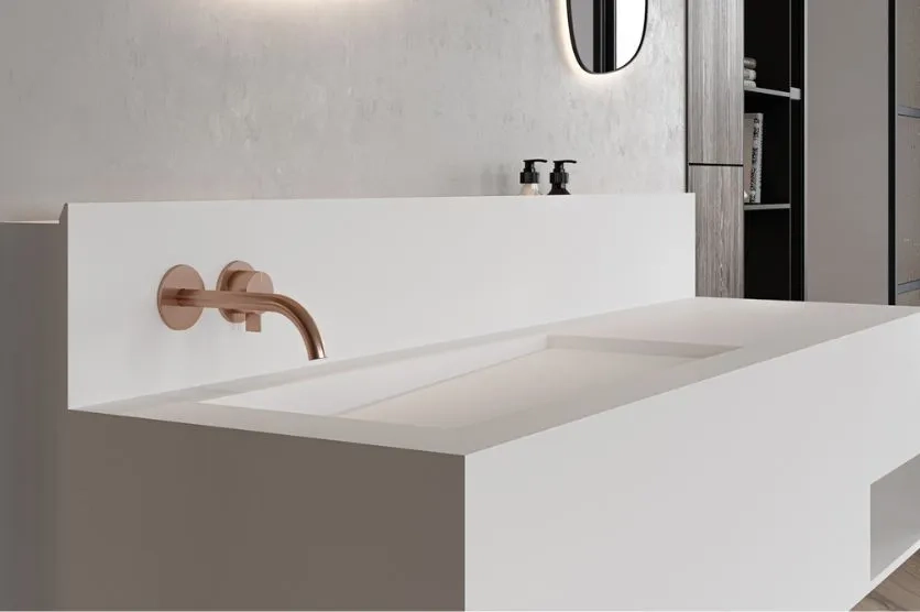 Dans la salle de bain, associé à des sanitaires blancs – vasque, baignoire, douche...–, c’est un duo parfait, pour une harmonie visuelle et une sensation de sérénité absolues.