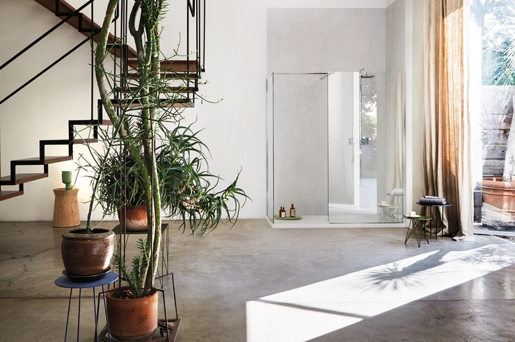 Paroi de douche walk-in, Sk-in représente un programme complet de douche ouverte, caractérisé par des éléments fixes en verre 8mm et l'absence de portes.