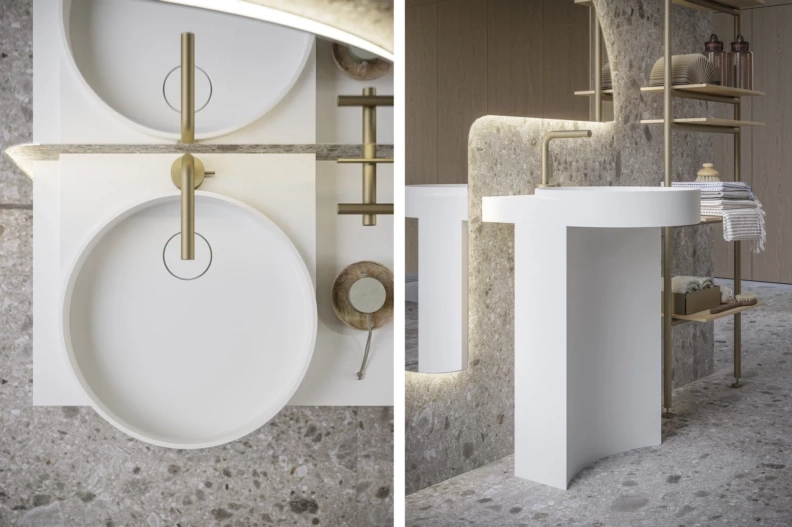 Focuc est une vasque à poser qui combine les formes rondes et carrés, dans un jeu géométrique de lignes épurées, résultant en un look moderne